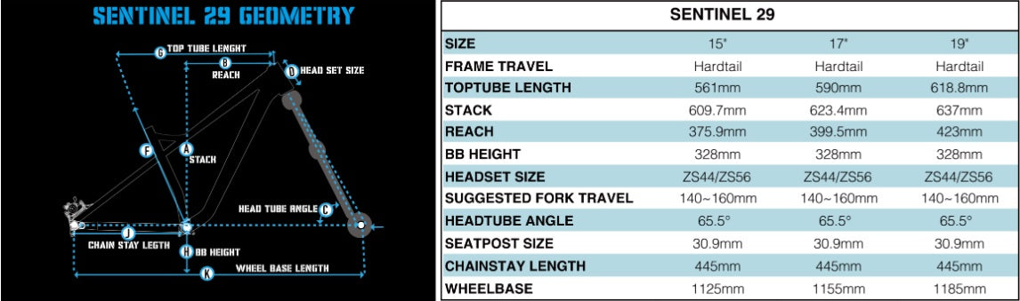 The SENTINEL 29 is a 29-inch hardtail bike frame designed for Enduro riders paired with a 140-160mm travel fork!